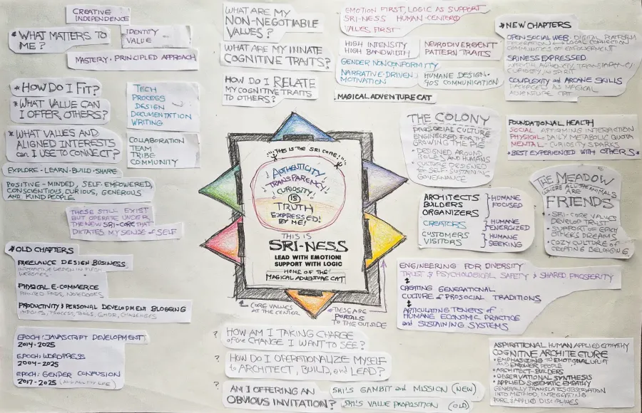 I have been rebooting my 2010-era design practice. I've been workshopping two maps: an "Activity Bingo Board" for task selection and a "Busy Busy Sri" for task pacing. I'm hoping these help with execution coming up later this month.