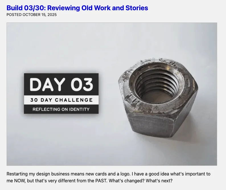 <title>Build 03/30: Reviewing Old Work and Stories</title>